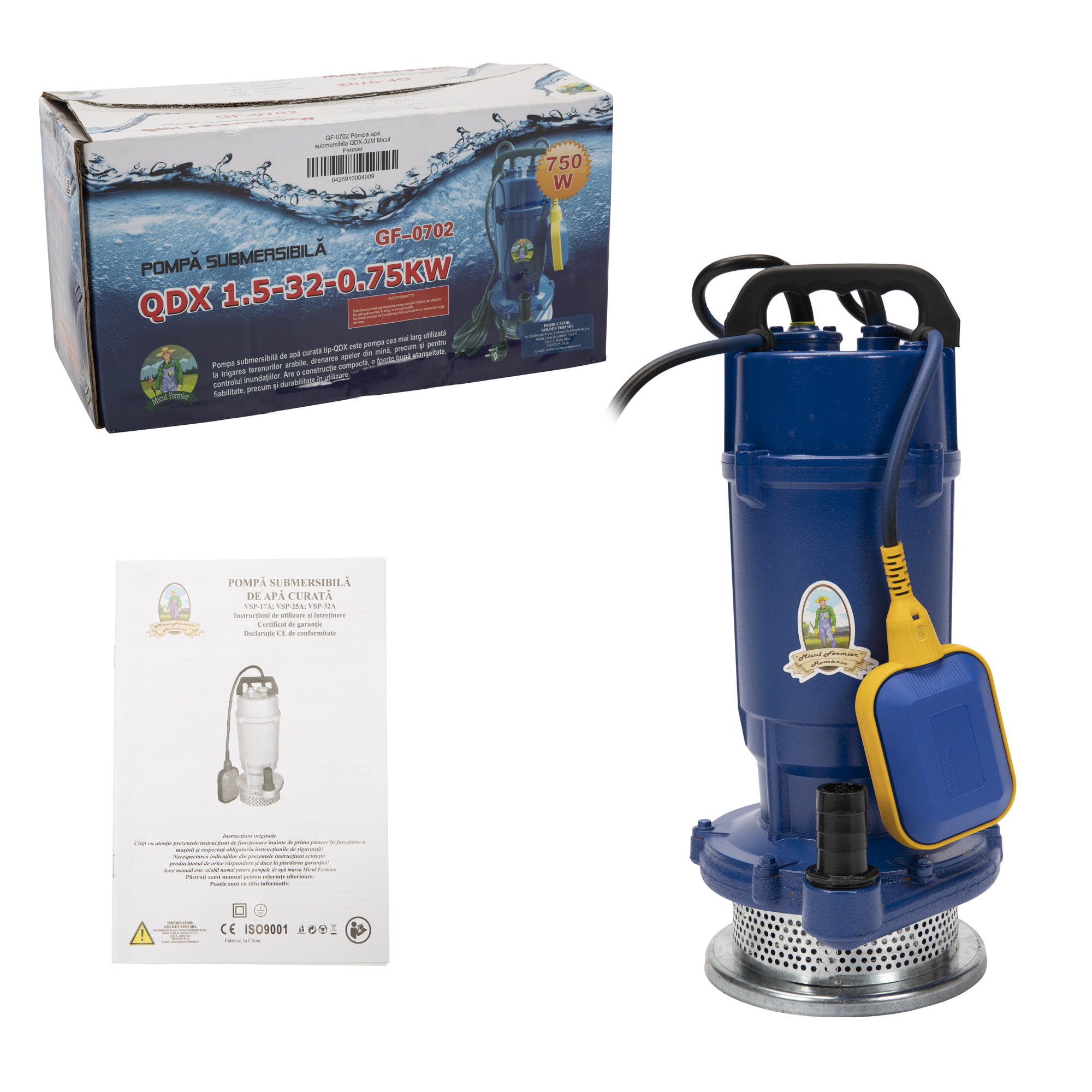 Pompa submersibila de calitate superioara Micul Fermier QDX 32m, 750W, GF-0702 este perfecta pentru extragerea apelor din piscine, fantani, irigatii gradini, evacuarea apei din subsoluri inundate, chiuvete, rezervoare, bai, chiar si pentru operarea cascadelor.