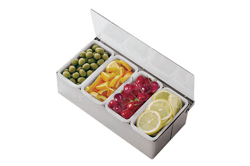 Port condimente, dreptunghiular, cu 4 compartimente, inox, dimensiune (LxlxH mm): 320x160x100,Specificatii