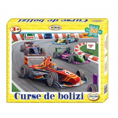 Asambleaza puzzle-ul si citeste informatii interesante despre bolizi si curse de masini de pe verso cutiei.