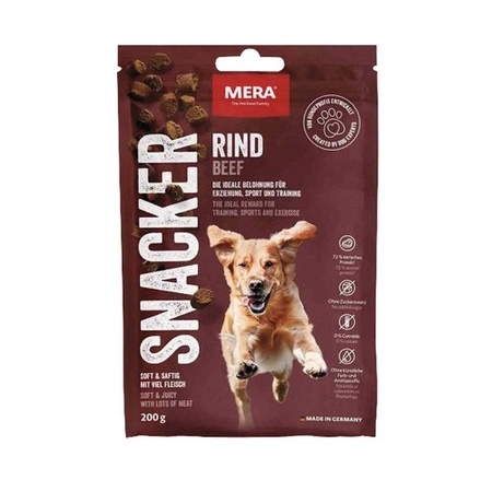 Recompense cu carne de vita pentru caini Snacker, 200 g, Mera