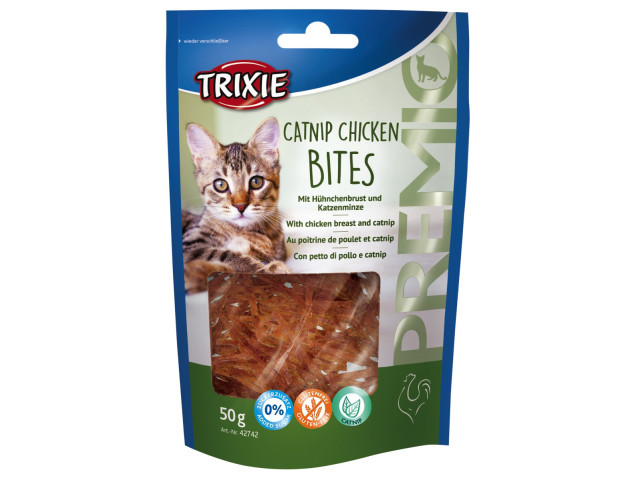 Compozitie: piept de pui (75 %), subproduse vegetale, amidon de tapioca, catnip (3 %), minerale | formula fara gluten | fara zahar adaugat | A se pastra intr-un loc racoros si uscat.Specificatii