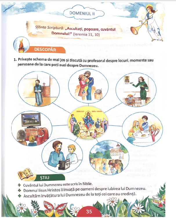 Manualul are o grafica atractiva, asemeni unui basm, care faciliteaza procesul de invatare si care contribuie la transmiterea mesajului crestin. Conceptele religioase fundamentale sunt explicate pe intelesul elevilor de clasa I, intr-o abordare moderna si ingenioasa.
