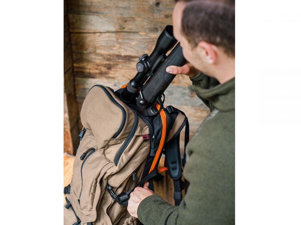 Sistemul de transport al armei este deosebit de practic. Carabina poate fi fixată la mijloc și, prin urmare, este întotdeauna la îndemână, fără a deranja sau restricționa libertatea de mișcare. Rucsacul practic pentru exterior este acoperit cu un strat integrat de ploaie împotriva precipitațiilor excesive și a condițiilor meteorologice extreme. O husă de protecție în culoarea portocalie este, de asemenea, inclusă și asigură cea mai bună vizibilitate.