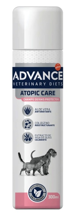 Baile regulate cu un sampon special ofera numeroase beneficii si accelereaza procesul de vindecare a cainilor cu dermatita atopica. ADVANCE DIETE VETERINARE ATOPIC Sampon cu tripla actiune are actiune antiiritanta, de refacerea si calmarea a pielii multumita formulei speciale ce contine ingrediente ca aloe vera, colagen si extract din frunze de maslin. Acest sampon este conceput ca un tratament complementar la ADVANCE DIETE VETERINARE - ATOPIC si este potrivit cainilor de toate varstele si taliile. Are un parfum discret si nu contine alergeni.