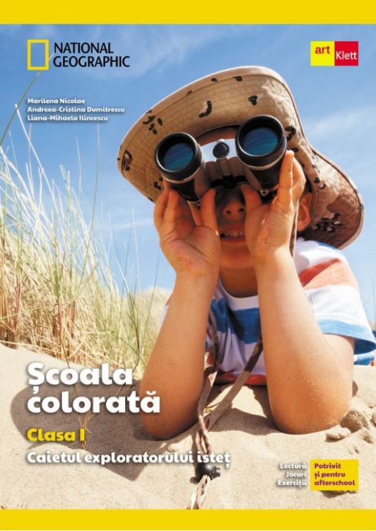 Scoala colorata. Caietul exploratorului istet clasa 1 - Marilena Nicolae Lucrarea este realizata in conformitate cu programele scolare in vigoare pentru disciplinele Comunicare in limba romana Matematica si explorarea mediului si Arte vizuale si abilitati practice clasa I aprobate prin ordinul ministrului educatiei nationale nr. 3418 din 19. 03. 2013. Lucrarea face parte din setul Scoala colorata si este destinata copiilor care accepta noi provocari. Lucrarea propune activitati suplimentare care stimuleaza dezvoltarea atentiei a puterii de concentrare si a indemanarii facilitand relationarea cu alte domenii ale cunoasterii si invatarea activa prin rezolvarea de exercitii. In colaborare cu National Geographic Folosind acest material didactic contribuiti la indeplinirea misiunii Societatii National Geographic. Societatea National Geographic este una dintre cele mai importante organizatii care isi desfasoara activitatea in sfera stiintei si in domeniul educatiei. Din anul 1888 si pana astazi Societatea a sprijinit cercetari stiintifice importante pentru omenire a finantat expeditii in destinatii pana atunci neexplorate a promovat conservarea si protejarea mediului si a culturilor regionale si s-a preocupat mereu de educarea noilor generatii. Potrivit si pentru afterschool