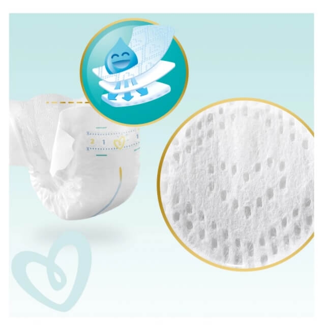 Ofera cel mai moale confort de la Pampers, in timp ce tine umezeala si mizeria departe de piele.