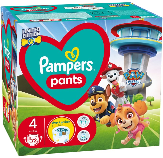 Scutece tip chilotel marimea 4 9-15 kg, 72 buc, Pampers - Pants Patrula Catelusilor