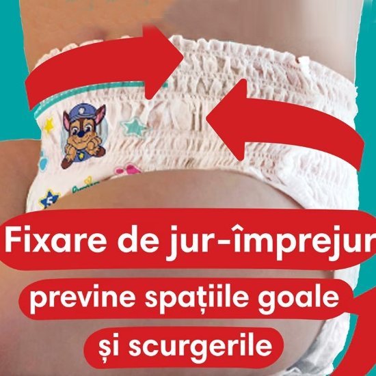Aceste scutece asigura o potrivire perfecta pentru a va salva pe tine si pe bebelusul tau de scurgeri! Descoperiti scutecele-chilotel editie limitata Patrula Catelusilor cu personaje! De asemenea, scutecele sunt prevazute si cu buzunarul revolutionar Stop & Protect care ajuta la prevenirea scurgerilor in partea din spate.