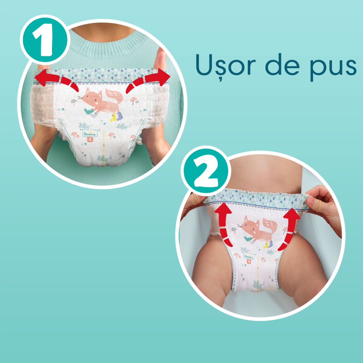 Cea mai buna protectie + Confort de la Pampers cu materiale foarte moi si elastice.