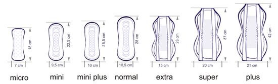 • 7 marimi – diferite din punctul de vedere al dimensiunilor si capacitatii de absorbtie;