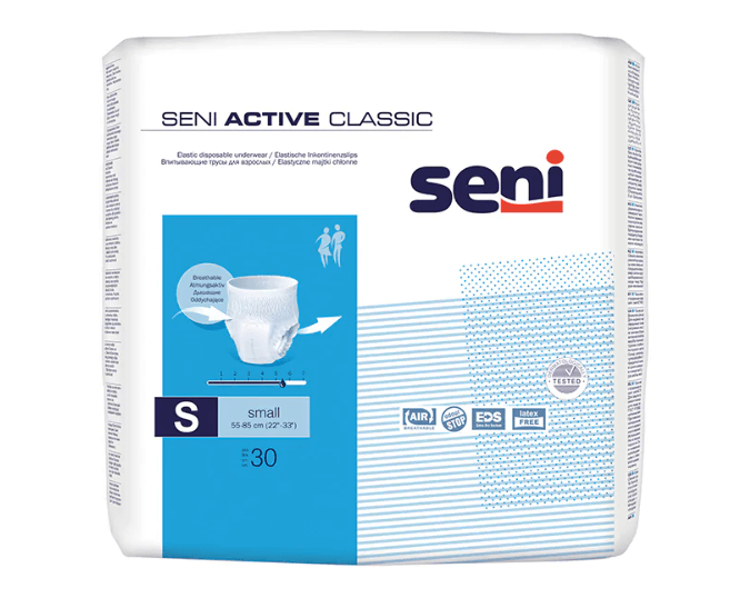 Chilotul absorbant Seni Active Classic, reprezinta solutia ideala pentru persoanele active cu probleme de incontinenta. Se utilizeaza ca un chilot normal si asigura: