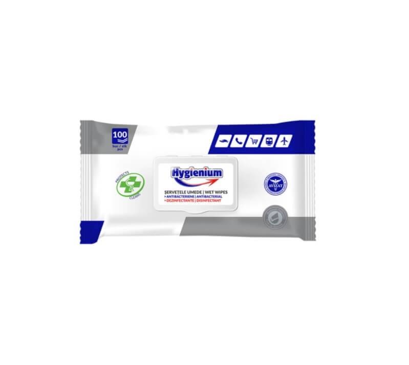 Hygienium servetele umede pentru suprafete multiple, fara clor. Servetelele umede omoara bacteriile si igienizeaza rapid suprafetele.