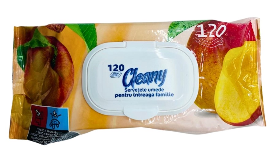 Servetele umede cu capac Peach & Mango, 120 buc Cleany - Pentru toate suprafetele lavabile - Curata rapid suprafetele - Parfum proaspat si placut - Ideale pentru calatorieSpecificatii