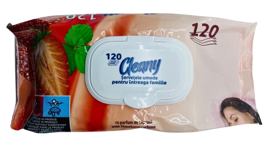 Servetele umede cu capac Strawberry, 120 buc Cleany - Pentru toate suprafetele lavabile - Curata rapid suprafetele - Parfum proaspat si placut - Ideale pentru calatorieSpecificatii