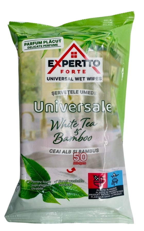 Servetele umede White Tea & Bamboo, 50 buc Expertto - Pentru toate suprafetele lavabile - Curata rapid suprafetele - Parfum proaspat si placut - Ideale pentru calatorieSpecificatii