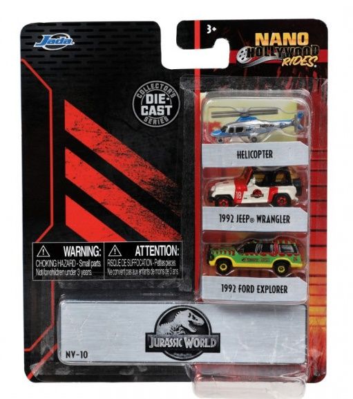 Set 3 masinute nano din metal din indragita serie Jurassic Park lungime 4 cm 1993 Ford Explorer Jeep Wrangler 12 A109 Helikopter.Specificatii