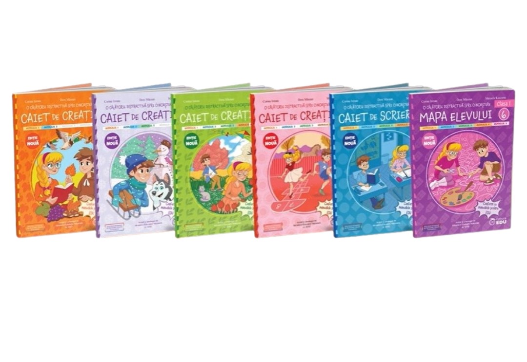 Noul set de caiete pentru clasa I este continuarea setului de la clasa pregătitoare. Sunt îmbinate armonios toate disciplinele școlare (CLR, MEM, DP, MM, AVAP) în pagini pline de creativitate, exerciții amuzante, cântece drăguțe și activități practice. Conținuturile educative sunt elaborate în conformitate cu manualele noastre de CLR și MEM pentru clasa I.