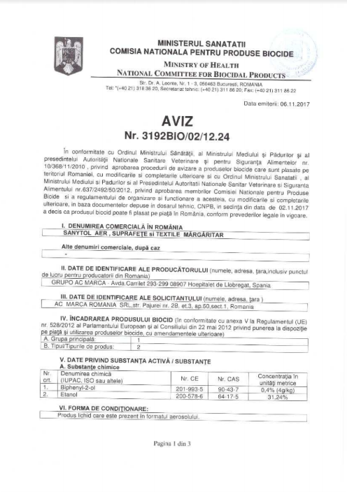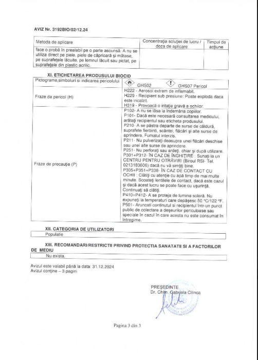 Nu utilizati direct pe piele, piele de caprioara, matase, pe lemnul lacuit sau pictat, pe suprafete din plastic acrilic. Utilizati in siguranță produsele biocide. Cititi intotdeauna eticheta si informatiile despre produs inainte de utilizare. Persoanele sensibile la substantele odorizante trebuie sa utilizeze acest produs cu prudenta.