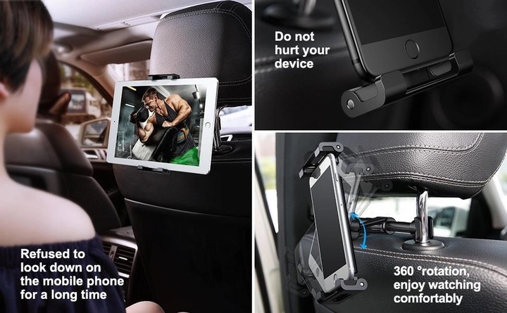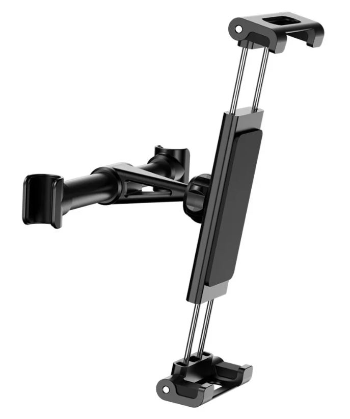 Baseus Backseat Car Mount este un suport auto universal pentru tableta sau smartphone, conceput pentru a fi montat pe tetiera scaunului. Accesoriu realizat din materiale de inalta calitate (PC + silicon + aliaj de aluminiu), conceput pentru dispozitive cu diagonala ecranului de 4,7 pana la 12,9 inci. O modalitate excelenta de a face calatoria pasagerilor mai placuta, fara a fi nevoie sa tineti echipamentul in maini.