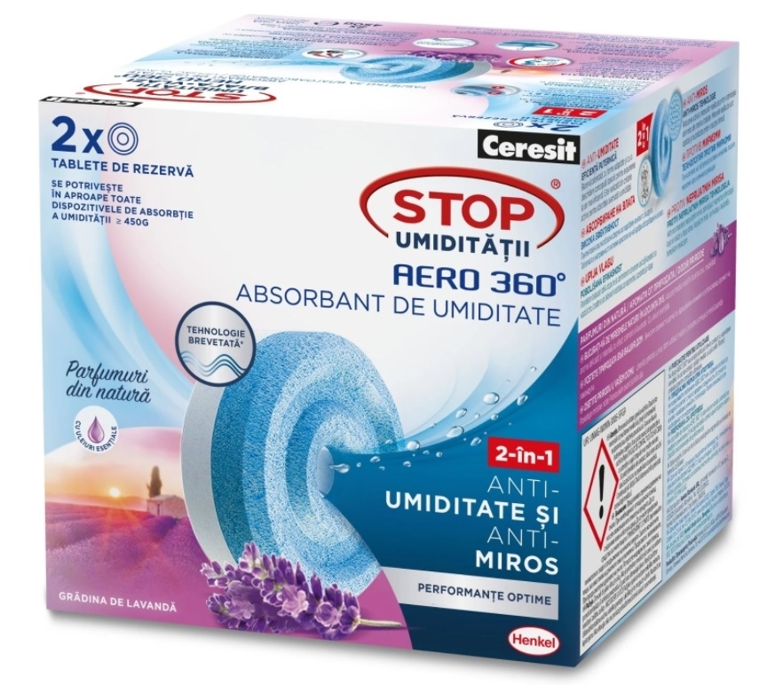 Dezumidificator rezerva absorbant umiditate Aero 360°, 900g parfum de lavanda 2 buc Ceresit