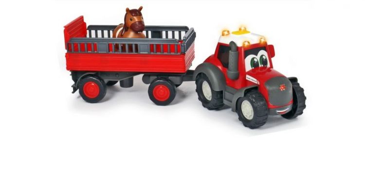 Tractoras cu remorca pentru bebelusi, cu licenta Massey Ferguson, cu sunet si lumina, si calut inclus. Ridicati-va manecile - chiar si mainile copiilor mici pot apuca bine tractorul si, datorita functiei de roti libere, pur si simplu il imping inainte si inapoi. Acum lucrarea poate veni! Tractorul cu roti libere ofera o experienta unica de joaca pentru toti iubitorii de ferma. Datorita dimensiunii impreuna cu functia de lumina si sunet, precum si a remorcii pentru animale, inclusiv o figura calut, sunt oferite dimensiuni de joc complet noi. Pentru a sprijini dezvoltarea celor mai tineri, exista parti in miscare, precum si lumina si sunet - ideale pentru promovarea abilitatilor motorii din prima copilarie. Desigur, tractorul este rezistent la culoare, rezistent la saliva, fara piese mici care ar putea fi inghitite si cu colturi rotunjite.