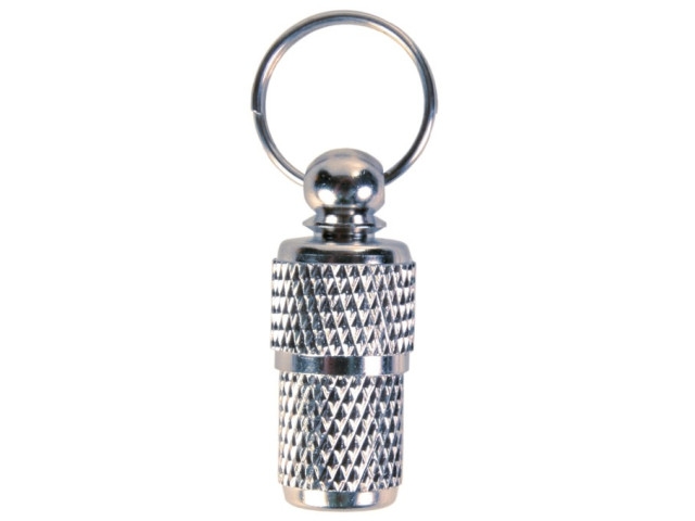 Adresierul din metal rezistent este usor de atasat la zgarda animalului de companie. Partea superioara al adresierului poate fi desurubata si se introduce o bucata mica de hartie cu detaliile de contact al proprietarului.