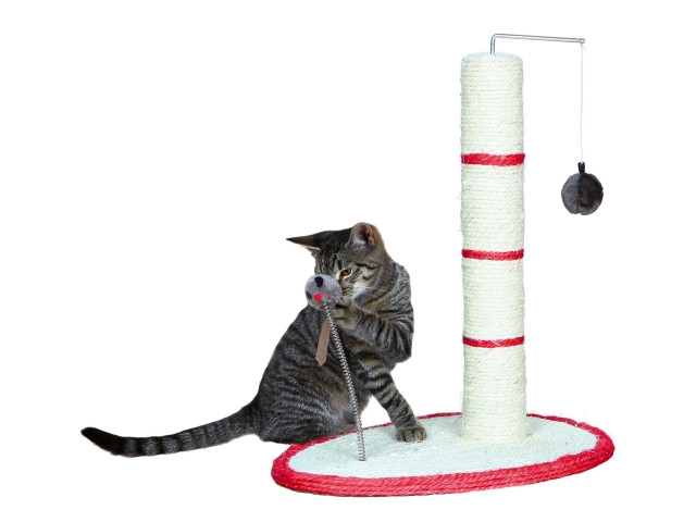 Sisal cu 2 jucarii, o mingiuta cu elastic si un soricel cu arc