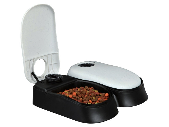 Distribuitor automat practic de hrana Trixie cu temporizator automat separat pentru doua boluri - destinat cainilor mici si pisicilor.