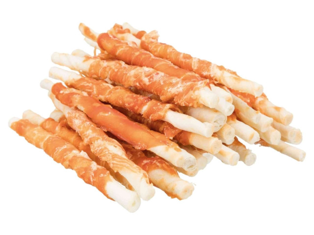 - piele cruda invelita in carne de pui. Fara gluten. Dimensiune: 12 cm. Continut: 30 buc/240gSpecificatii