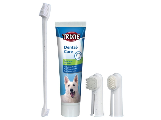 Setul de curățare a dinților contine 100g pastă, perii de degete, masaj de gingie, perie obișnuită cu două fețe.