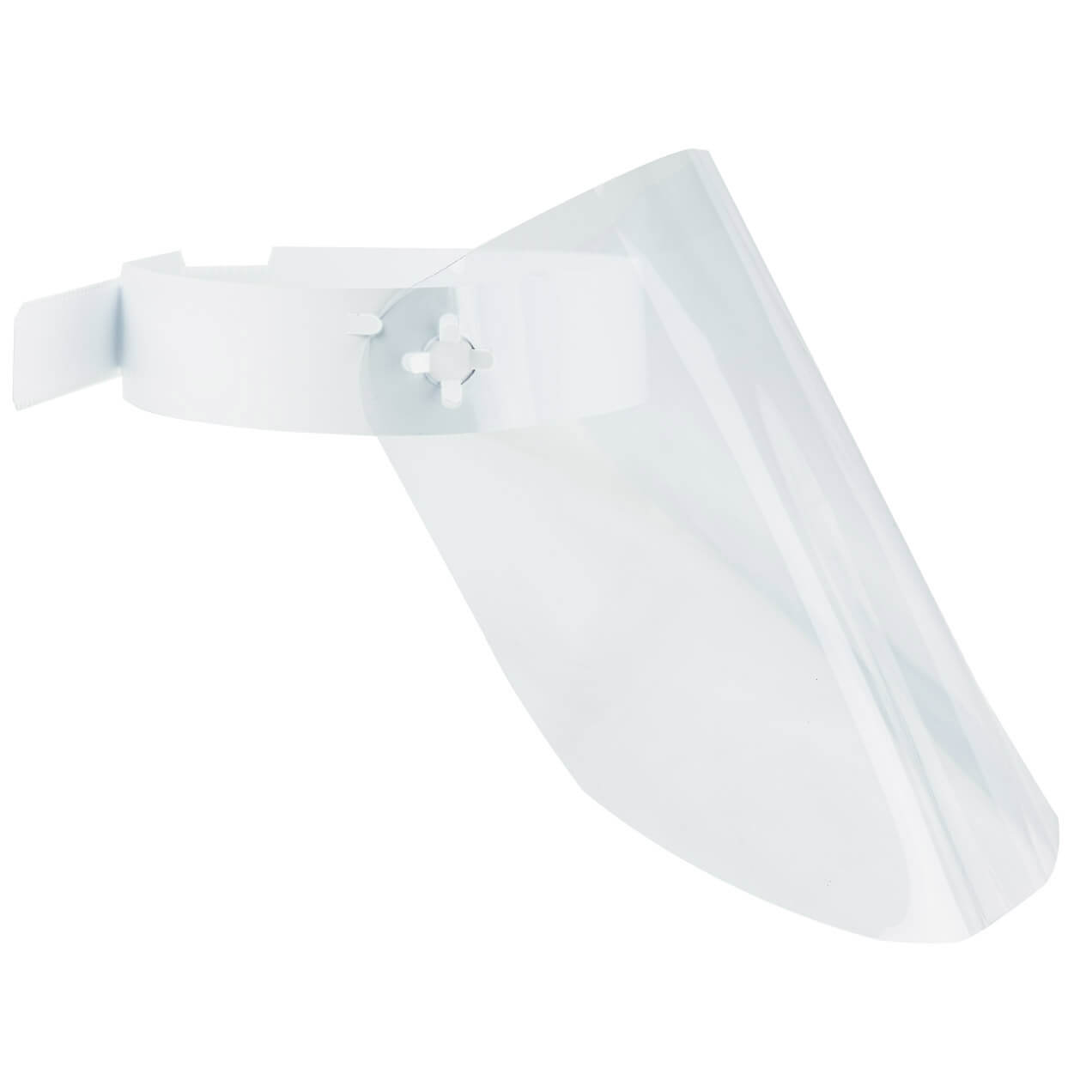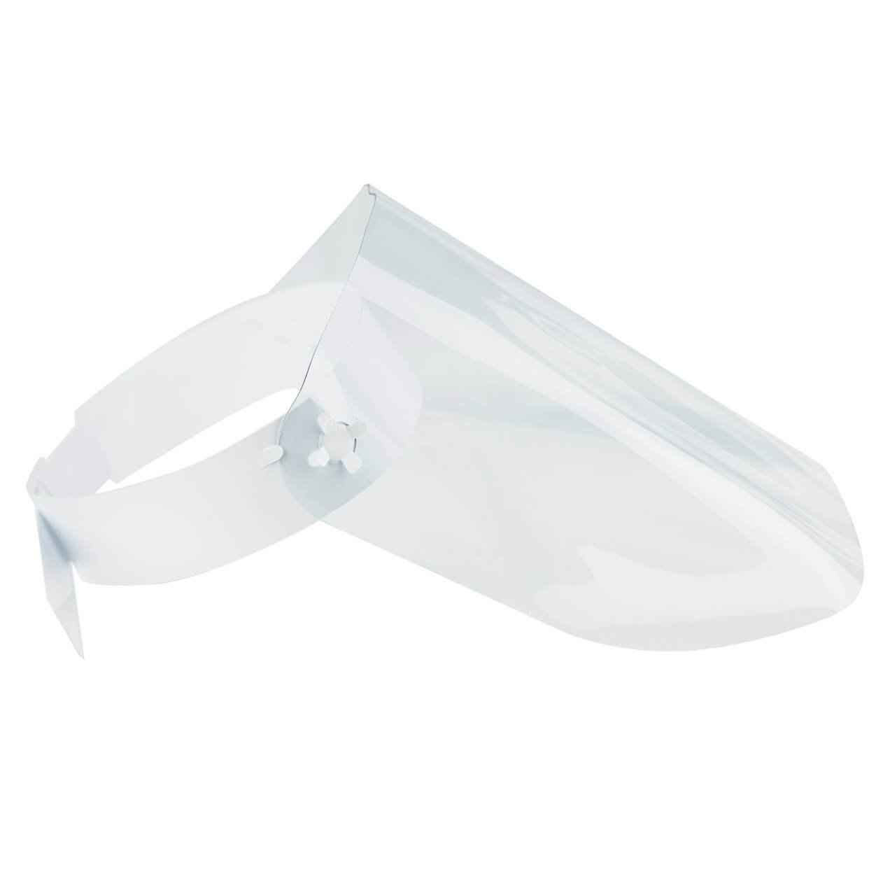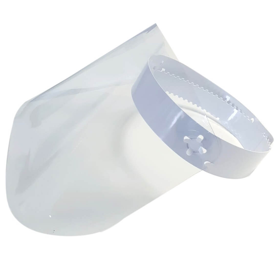 Viziera transparenta din "folie cristal", pentru intreaga fata, cu suport de fixare pe cap.