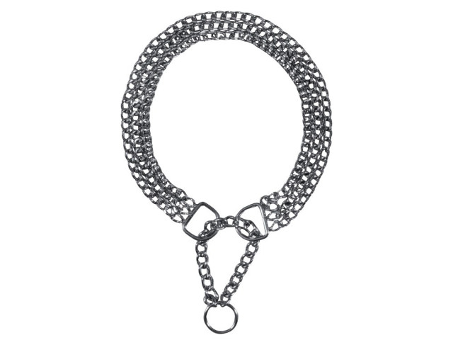Zgarda semistrangulanta confectionata din crom. Zgarda semistrangulanta ajuta la reducerea tragerii cainelui in timpul mersului. Daca cainele trage mai tare de lesa, zgarda se va strange pana la punctul de oprire stabilit. Cand cainele se opreste din trasul lesei, zgarda se largeste din nou si devine confortabila pentru caini. Punctul de oprire sau nodul zgarzii este reglabil: inainte de utilizare, punctul trebuie setat astfel incat animalul de companie sa nu poata aluneca din zgarda si sa nu fie niciodata prea strans cand este tras.Specificatii